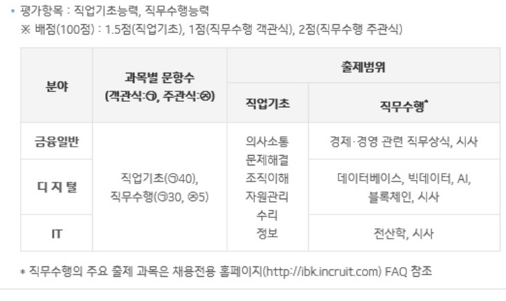 처음 NCS 시험을 봤다. IBK 기업은행 필기 였고 디지털 분야였다.