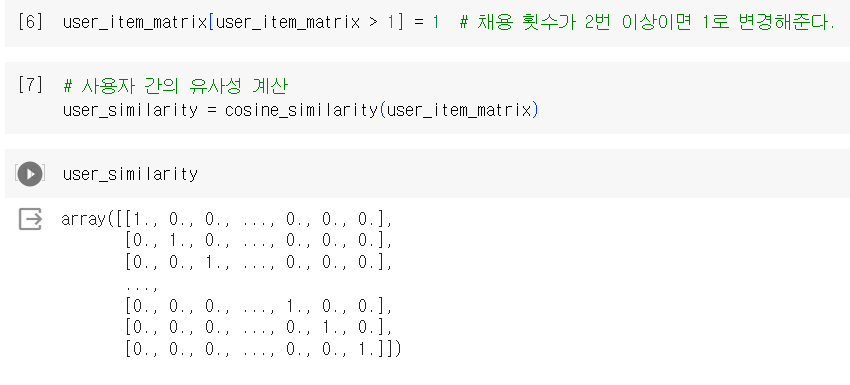 그림 4와 같은 계산을 끝낸 user_similarity는 (8482, 8482)로 각각의 유사도가 계산되어있다.
