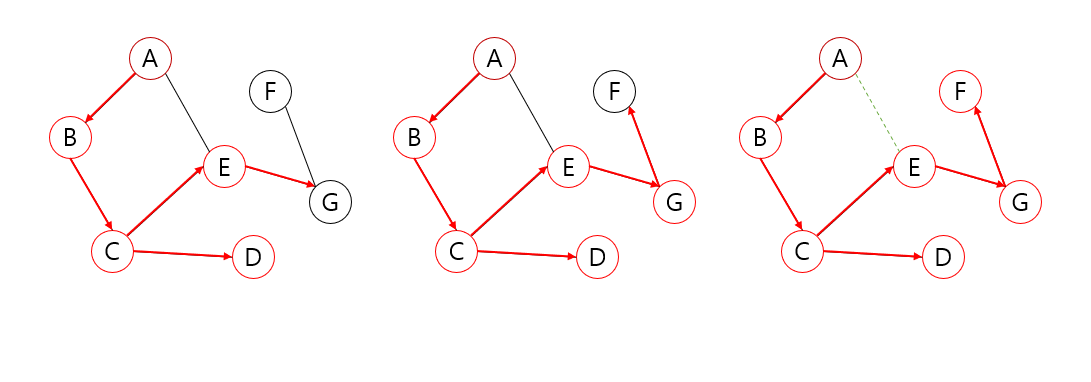 하나의 경로를 따라 최대한 깊이 파고들면서 탐색하고 더이상 탐색할 노드가 없을 때 까지 해당하는 경로를 따라간다.