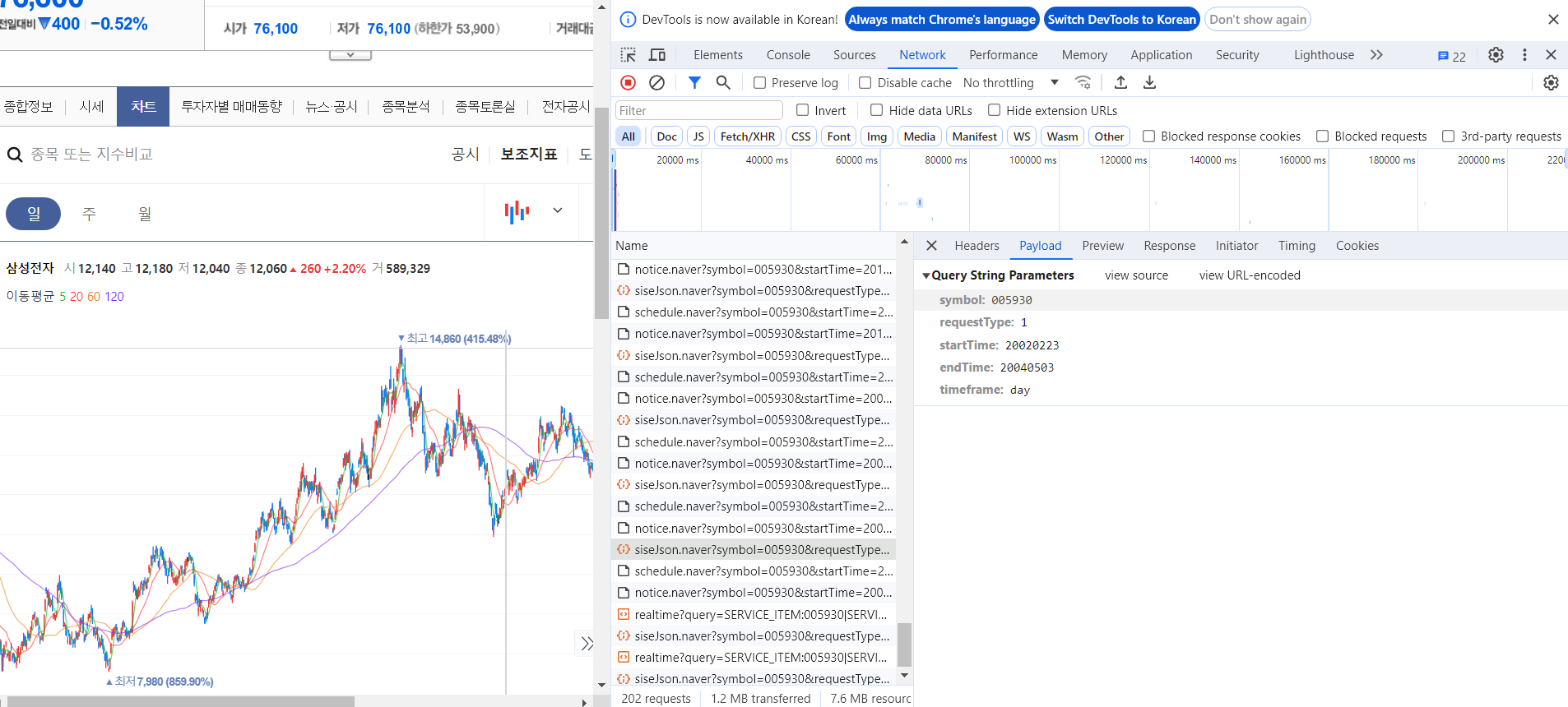 url2 = f"https://api.finance.naver.com/siseJson.naver?symbol={symbol}&requestType=1&startTime={start_date}&endTime={end_date}&timeframe=day"